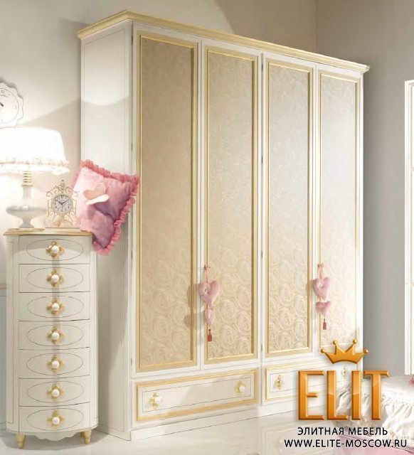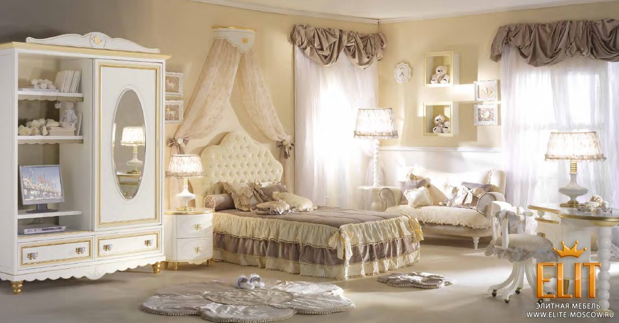Мебель для детских коллекции Maison Jolie итальянской фабрики Ebanisteria Bacci – это великолепная в классическом стиле, которая подарит максимум удовольствия от эстетических и функциональных характеристик. Мебель позволит воплотить сказку в реальную жизнь благодаря непревзойденному дизайну, продуманности каждой детали до мелочей и цветовому сочетанию. Фабрика предлагает красивые и удобные кровати с балдахином и без, функциональные и вместительные шкафы-купе и комоды, удобные письменные столы и прикроватные тумбочки, кресла и прикроватные тумбочки, зеркала и книжные полочки – все, что необходимо для обустройства детской комнаты. В процессе изготовления изделия подвергаются тщательному экологическому контролю, также предусматриваются все нюансы, которые обеспечивают удобство и безопасность для детей: высота и размещение полок, доступ к одежде и игрушкам, прочность креплений и фурнитуры. Изделия изготавливаются из экологически чистого сырья – ценных пород древесины с применением инновационных технологий и ручного труда, поэтому она отличается экологичностью, высоким качеством, великолепной функциональностью, практичностью, прочностью и надежностью. В качестве отделки используются только натуральные материалы, качественный текстиль для обивки мягкой мебели, резной декор, покраска, золочение и серебрение. Нежные оттенки золотого, розового и фиолетового цветов, предлагаются в глянцевом и матовом варианте.