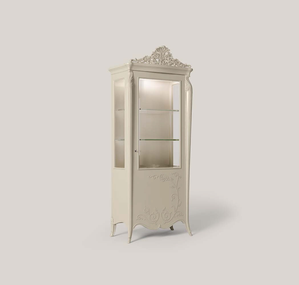 Витрина 1 дверная с подсветкой, отделка: Luxury белый