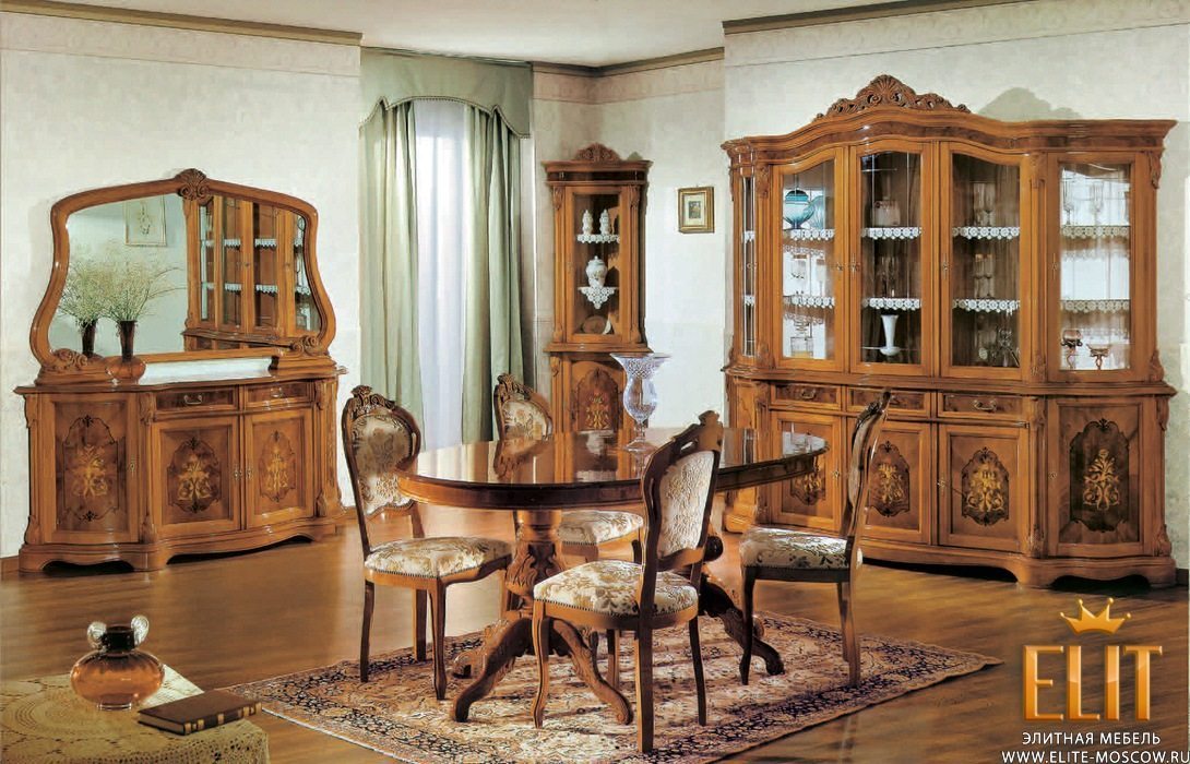 Итальянская гостиная ATHENA фабрики SANGIORGIO обладает поистине уникальным стилем – эклектикой, который совмещает сразу несколько отличных друг от друга дизайнерских стиля: классика 18 века, неоклассика и современность. Широкий ассортимент предложенной мебели позволяет подобрать для своего дома элегантные, стильные предметы интерьера на любой вкус. Коллекция изобилует замысловатыми формами, обилием декора, ярким сочетанием белого и золотого. Вся мебель изготавливается из натурального массива древесины вручную по традиционным итальянским методам опытными ремесленниками фабрики, поэтому мебель является уникальной и индивидуальной. Классические бюро, трюмо, практичные витрины строгих линий, аскетичные обеденные столы и стулья разнообразной формы, помпезные консоли и секретеры, красивые зеркала и изысканные буфеты – все это составит роскошный образ вашей гостиной, которая долгие годы будет привлекать своим неповторимым шармом. Мебель в основном представлена в двух цветовых решениях: белое с золотым и натуральное дерево. В качестве отделки мастера используют ручную резьбу по дереву, радику, художественную роспись, окрашивание, золочение и серебрение, лакировку, интарсию, стекла и зеркала. Стулья и кресла обиты дорогим текстилем разнообразной цветовой гаммы: от идеально молочно-белого до ярких оттенков с кокетливыми пейзанскими узорами. Роскошная мебель для гостиной ATHENA позволит ощутить великолепие и безграничную власть красоты высокого итальянского мастерства.