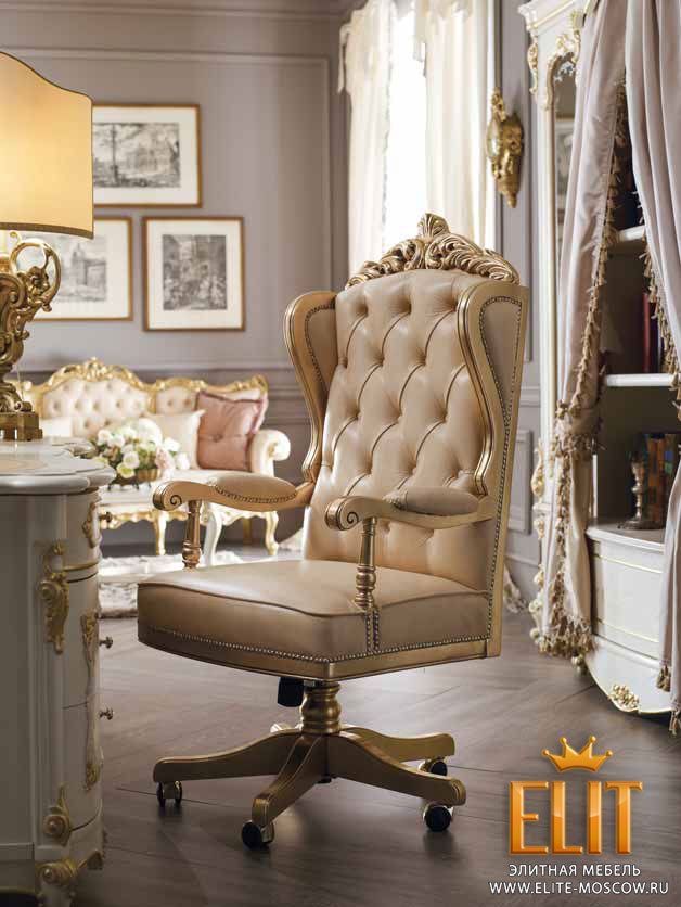 Итальянская компания AGM представляет элитную мебель для библиотек и кабинетов Royal, которая являет собой яркое представление классики XVIII века. Отменное мастерство ремесленников позволяет создавать уникальные шедевры современного мебельного мастерства, которые подчеркнут вкус, стиль и статус своего обладателя благодаря отменным функциональным характеристикам. Коллекция представлена в лакировке цвета слоновая кость, которая в сочетании с художественной резьбой и сусальным золотом позволяет создавать эффектную композицию, которая наполнит помещение атмосферой неповторимого комфорта, изящества и уюта. Неиссякаемое творчество мастеров позволило изготовить мебель в классическом венецианском стиле XVIII столетия, которая подчеркивает вкус и статус своего обладателя. В коллекции представлены массивные письменные столы, книжные шкафы с драпировками, кресло руководителя в кожаной обивке, трехместный диван, удобные стулья, журнальный и кофейный столик, представленные в богатстве ручной отделки, добиваясь поистине королевского убранства. Фабрика изготавливает мебель исключительно из натуральной цельной древесины и многослойной фанеры. Оберегая ремесленные традиции, используя различные технологии, изготовление мебели и обработка материалов мастерами производится с особой точностью, что позволяет создавать мебель, которой невозможно не восхищаться. Неповторимое изящество мебели достигается за счет вычурной резьбы, искусной росписи, покрытия декоративных элементов сусальным золотом, лакировок в цвете слоновая кость, использования элитного текстиля и натуральной кожи для обивки мягкой мебели, декорированной капитоне, латунных элементов с кристаллами Сваровски, которые подчеркивают богатство и респектабельность кабинетов Royal.