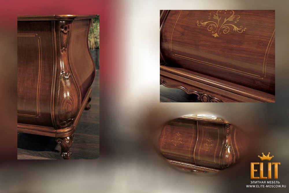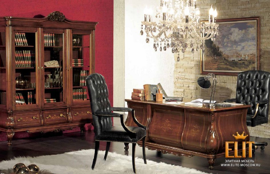 Итальянский кабинет Villa Arvedi фабрики Mirandola – это великолепная классическая мебель, которая создаст в вашем кабинете аристократическую роскошь благодаря своему совершенному и неповторимому внешнему виду. Кабинет Villa Arvedi изготовлен в лучших традициях итальянских мастеров-ремесленников. Модели для кабинета соединяет в себе роскошь и великолепие старинной мебели, а также искусную работу современных мастеров. В коллекции представлены массивный письменный стол с выдвижными ящиками и кожаной столешницей, удобные стулья и вращающиеся кресла, вместительные книжные шкафы и витрины. В процессе производства мебели используются исключительно натуральные материалы. При изготовлении мебели специалисты фабрики уделяют повышенное внимание качеству материала. Вся мебель этого производителя изготовлена из цельных массивов дерева по старинным и современным техникам, на современном оборудовании. Тонкая работа истинных мастеров своего дела придется по вкусу любителям высокого классического стиля. Дизайн изделий привлекает с первого взгляда округлыми частями простых и незамысловатых форм моделей, вся мебель фабрики Mirandola сделана под старину. В дизайне мебели используется искусная резьба по дереву, лакировка, тонирование, интарсия, золочение, великолепные декоративные элементы из дерева, латунная фурнитура, закаленное стекло. Для обивки кресел, стульев и столешниц мастера используют высококачественную натуральную кожу, декорированную кристаллами и капитоне. Итальянский классический кабинет Villa Arvedi – это роскошная мебель, являющаяся олицетворением солидности и респектабельности своего владельца.