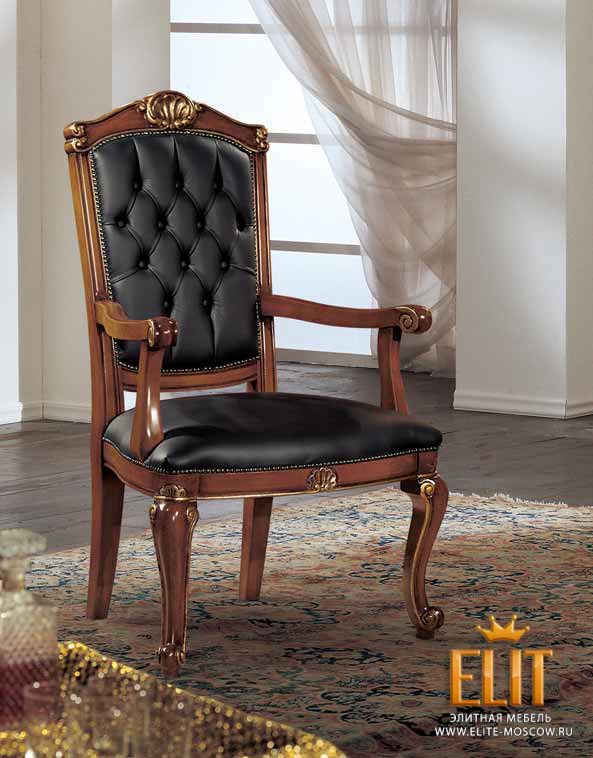 Кресло, обивка кожей, резьба ручной работы