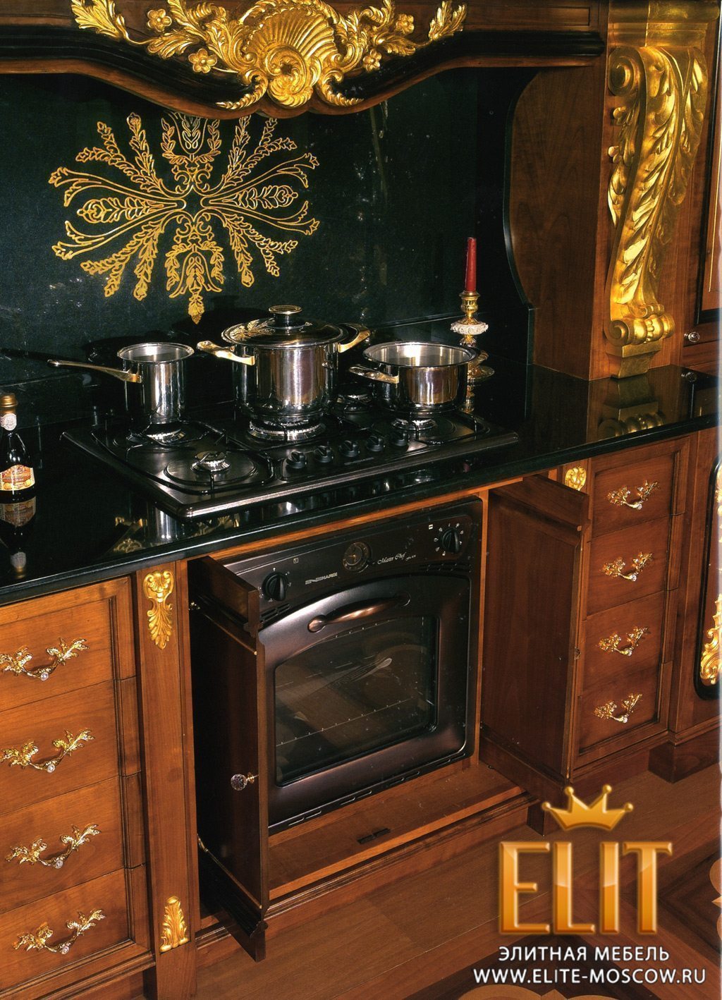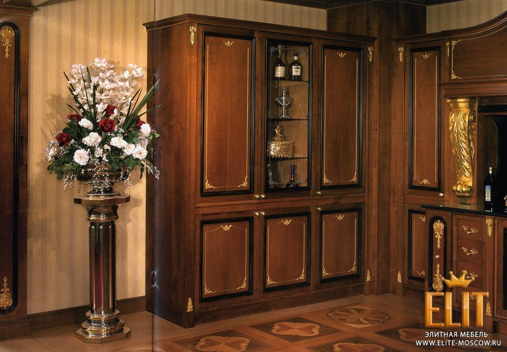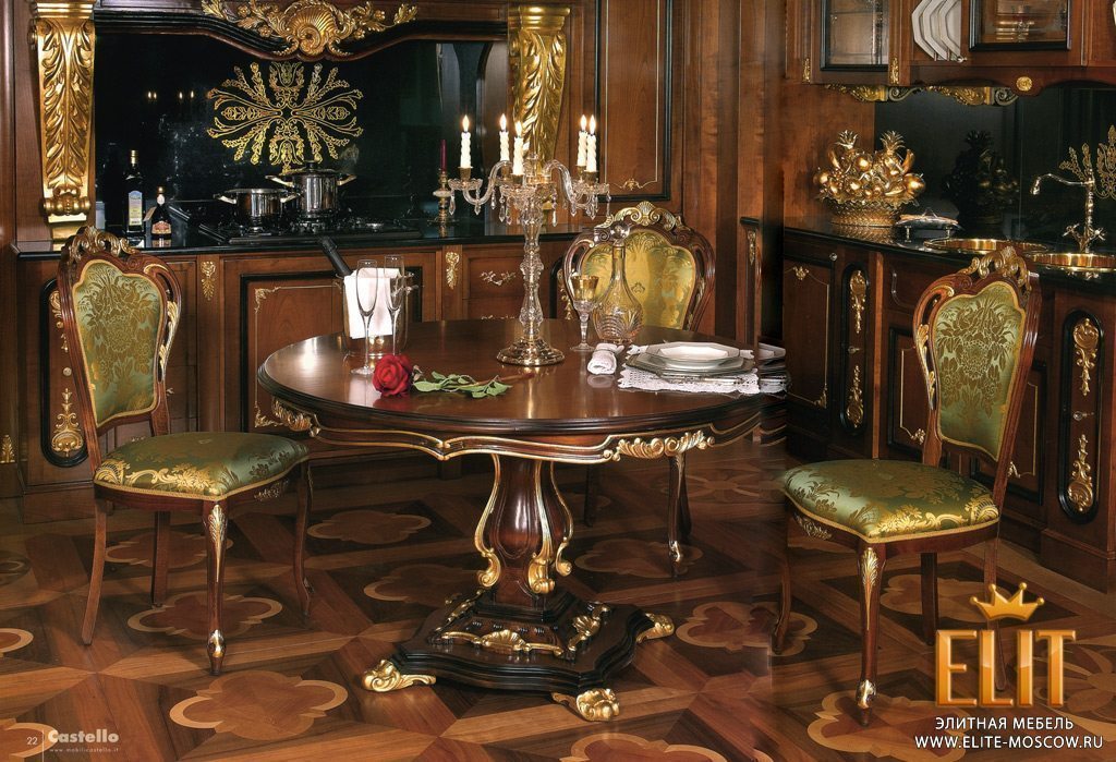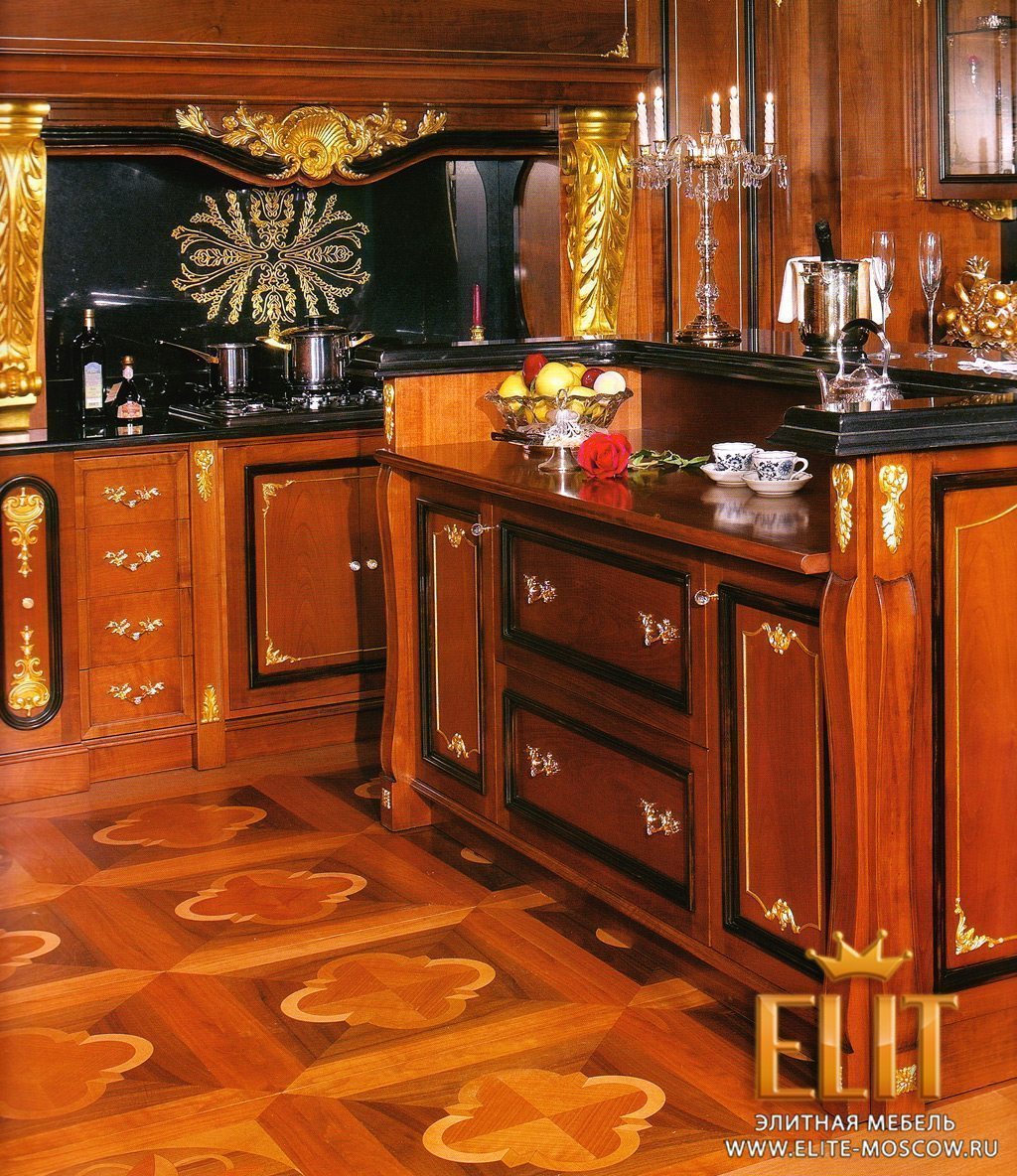 Великолепная итальянская мебель для кухни серии IMPERIAL выполнена из ценных пород дерева, которые качественно обработаны по специальным технологиям. Опытные мастера-ремесленники с особым вниманием отнеслись к исполнению каждой детали мебели. Ручная работа, резьба по дереву и эксклюзивная отделка тому подтверждение. Цветовая комбинация основного материала – дерева, темной столешницы и золотой отделки заставляет надолго задержаться взглядом на мебели. Особое великолепие мебели IMPERIAL придает, конечно же, отделка золотом: золотая фурнитура, эксклюзивные аксессуары, благодаря которым мебель выглядит невероятно красиво и благородно, а при лучах света добавляет блеск помещению своим прекрасным декором. Мебель IMPERIAL достойна внимания и восхищения, это настоящее произведение искусства.