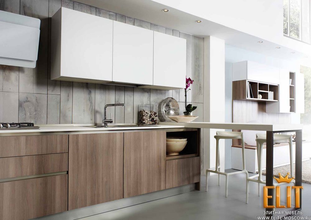Итальянская мебельная фабрика AURORA демонстрирует великолепную серию современной мебели для кухонь JOLIE, которая отличается оригинальным контрастным цветовым решением, прекрасным стилем исполнения и отделкой, а также компактным дизайном. Многофункциональная, качественная, стильная и современная мебель JOLIE, выполненная из натуральных и качественных материалов на современном оборудовании, является прекрасным решением в пользу тех, кто любит комфорт, пространство, удобство и легкость в эксплуатации. В изготовлении данной серии мастера используют такие редкие материалы, как камень и вулканическая лава, нетрадиционные и экзотические породы древесины - каштан, американский орех, палисандр и других, что является одной из отличительных особенностей фабрики. Коллекция кухни JOLIE изготавливается из специальных материалов и отделки, которые получают в результате сложных технологий с целью повышения прочности природных материалов. Следует также отметить, что фасады мебели не имеют ручек, а, следовательно, визуально увеличивают пространство кухни. В коллекции представлены модульные стенки, обеденный стол из дерева и высокие металлические стулья, что являет собой явный признак стиля модерн. Более того, данная коллекция идеально подойдет для студий, где кухня плавно переходит в зону гостиной, создавая целостный и единый образ. Кухни JOLIE – идеальное решение для современных студий, которая поможет создать гармоничный, многофункциональный и целостный образ в интерьере.