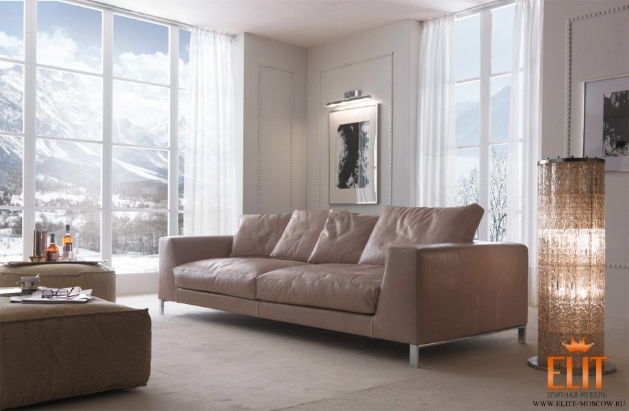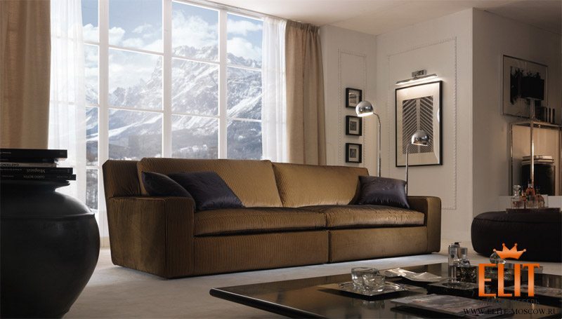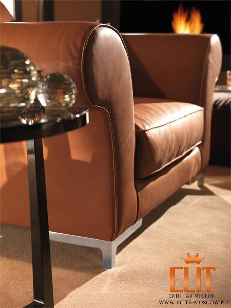 Обивка из заменяемой ткани. Обивка из устойчивой кожи. Структура из дерева, покрыта пенополиуретаном с различной плотностью, каркас с эластичными ремнями, сделанный по высокой технологии. Наполнение подушек для сидения и для спины сделано из гусиного пуха, разделены на ячейки со вставкой для поддержки из пенополиуретана с различной плотностью, моделированного и недеформированного, и все это покрыто чехлом из ткани. Ножки из дерева «невидимые».