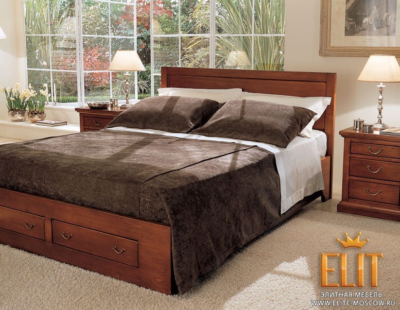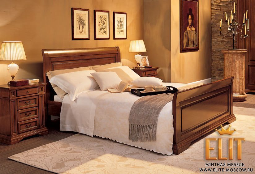 Кровать с деревянным изголовьем и изножьем