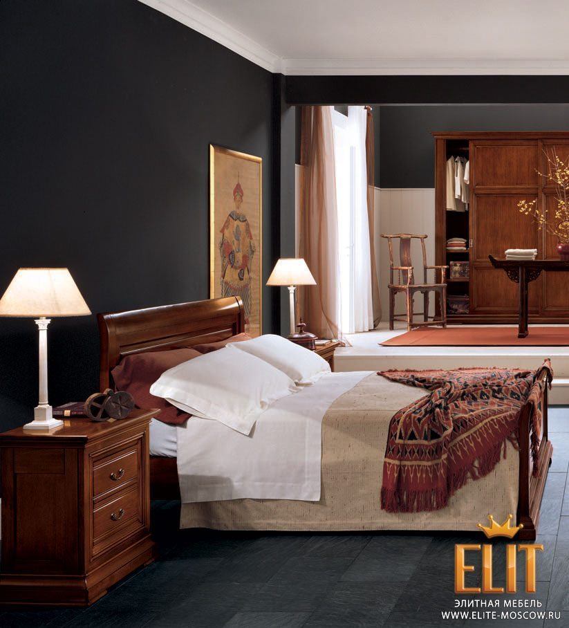 Кровать с резным изголовьем и изножьем
