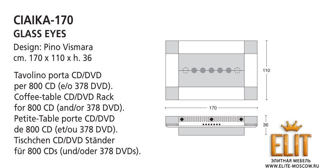 Продукция итальянской фабрики VISMARA, представляется уникальной мебелью для домашних кинотеатров и HI-FI техники, систем хранения CD, DVD носителей. Более того, в экспозиции наших салонов широко представлены самые яркие модели производимой мебели от VISMARA. Если Вы — меломан или любитель кино, то наверняка уже столкнулись с проблемой размещения видео и аудио носителей: c обычных полок кассеты и диски падают,из шкафа неудобно доставать... Эта проблема легко решается с приобретением продукции марки VISMARA design, одного из самых известных в мире производителей стоек и контейнеров под CD и DVD. Стойки и контейнеры от VISMARA не только помогут разместить вашу коллекцию (вплоть до 1000 CD в одном модуле), они станут ярким, стилеобразующим элементом интерьера. В новой коллекции VISMARA предлагает самые разнообразные виды отделки: от классических ореха или вишни до таких необычных, как сусальное золото, полосатое зебрановое дерево, кожа страуса и кристаллы Svarovski.