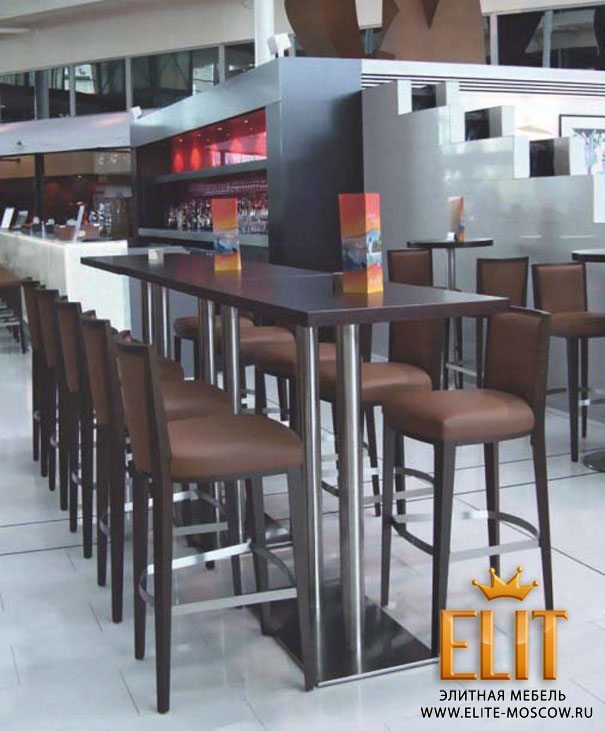 Стул фанерный высокий барный с мягким сиденьем с каркасом из хромированного металла