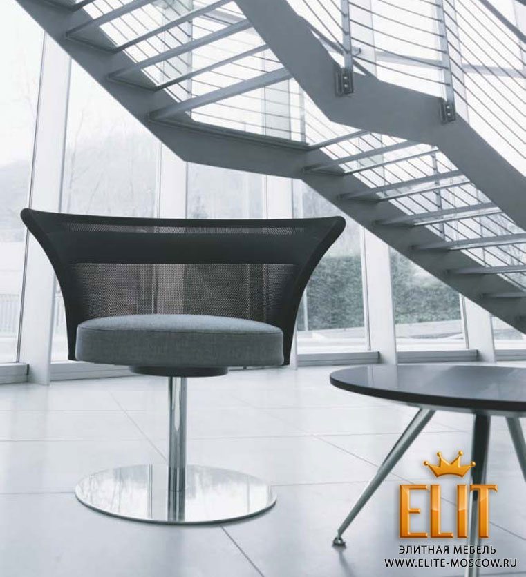 Кресло мягкое из литого полиуретана на ножке из хромированной стали, поворотное с памятью